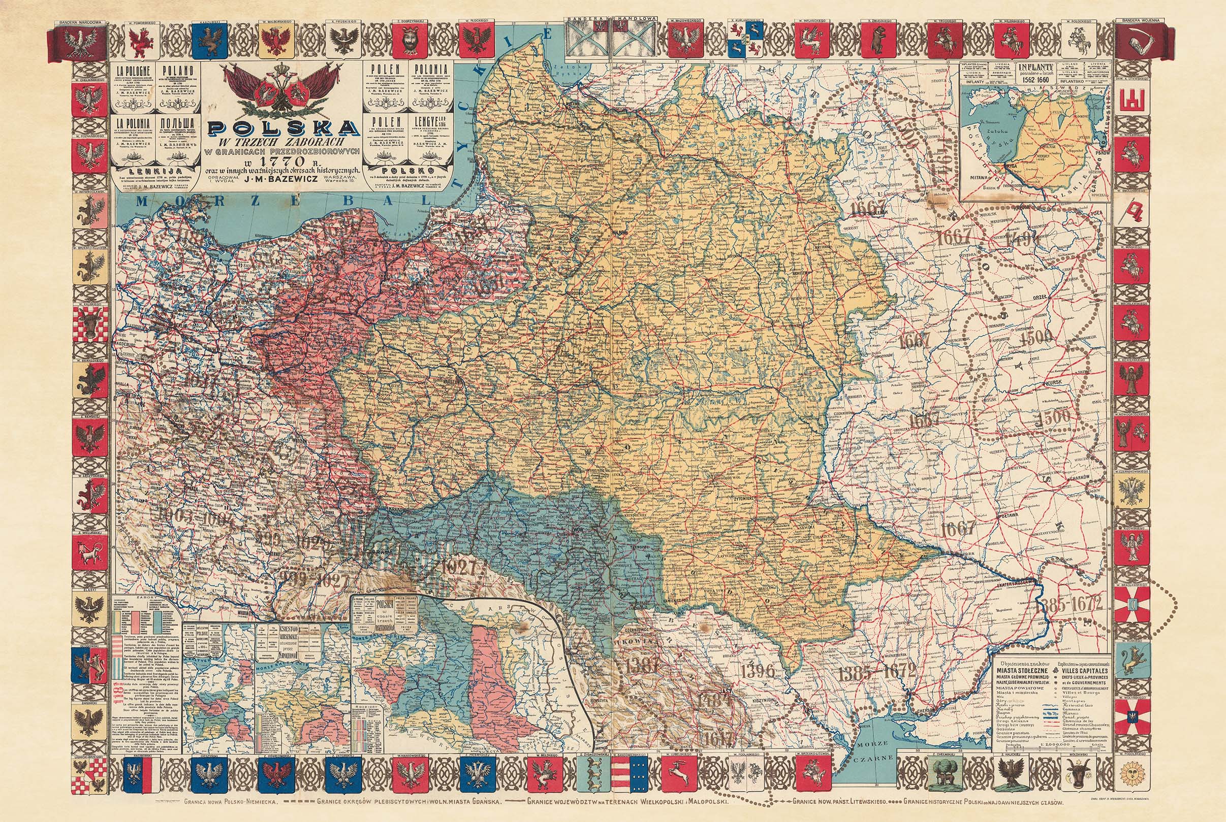Vintage Map of 1770 Polish-Lithuanian Commonwealth & Partitions