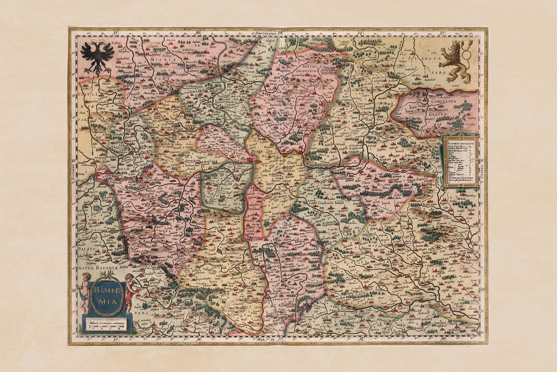 1623 Bohemia Map Print - Mercator & Hondius Atlas Map of Czech Republic, Colored Historical Wall Art